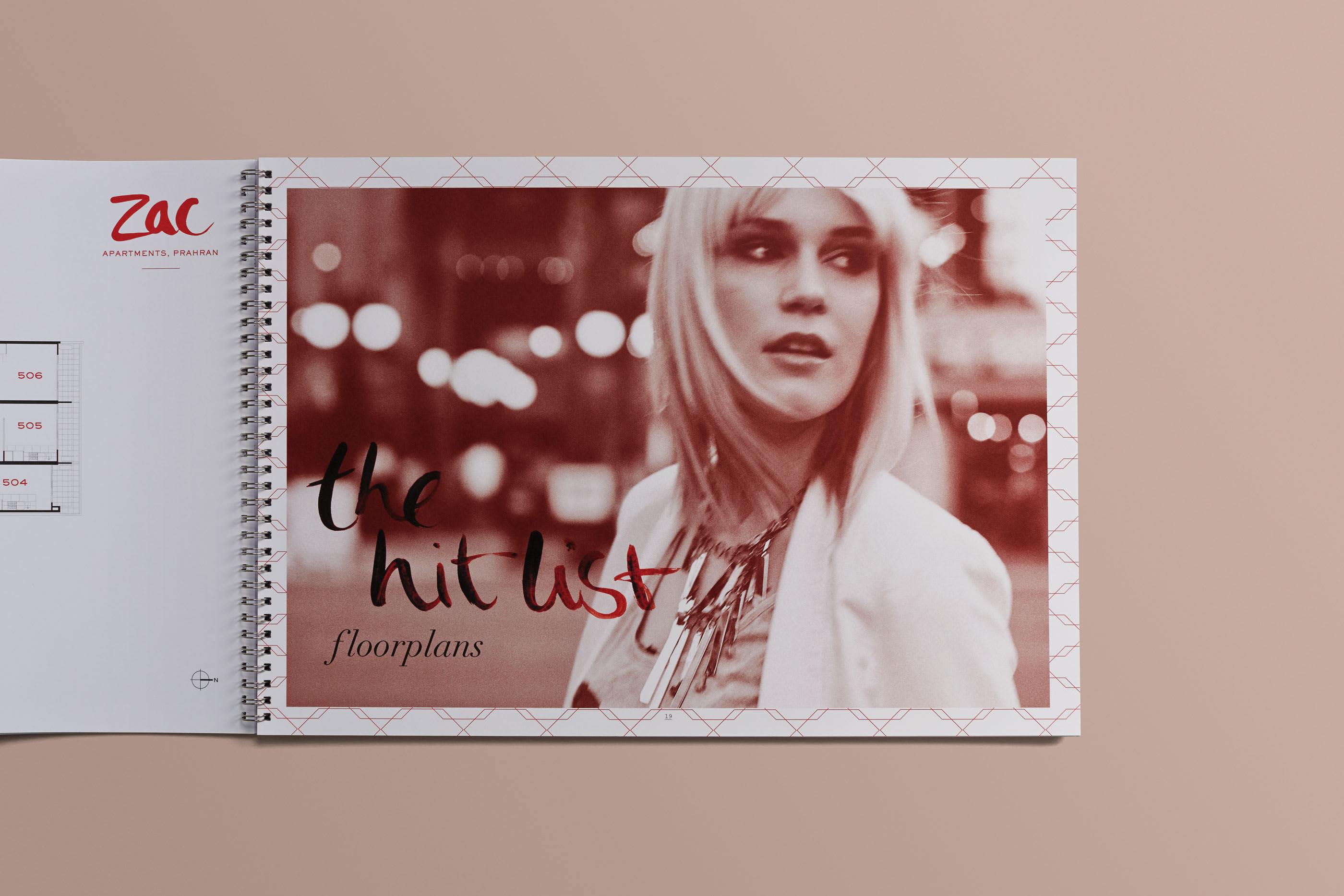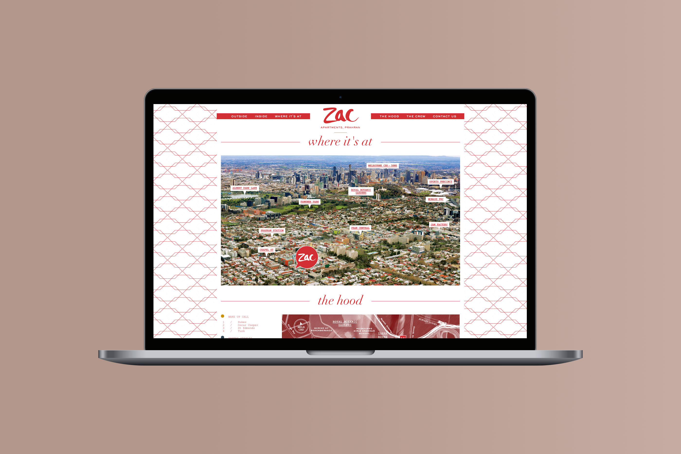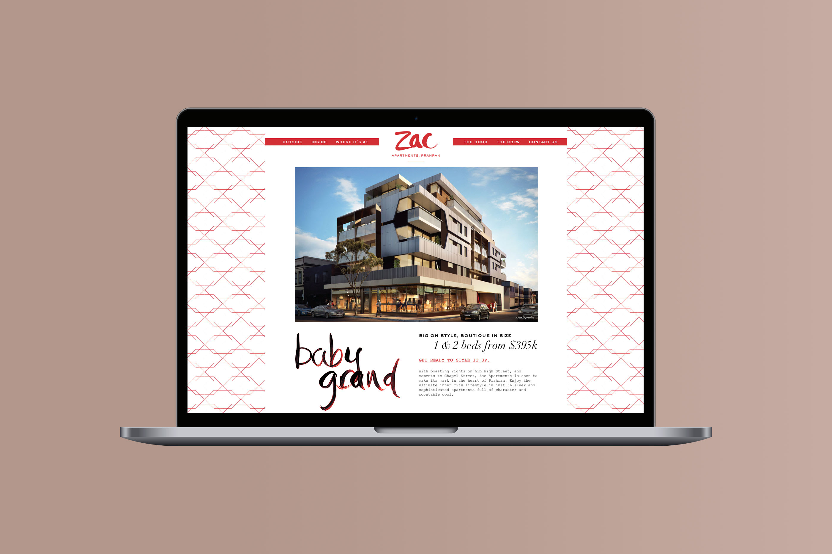 red palette, local photography and pattern inspired by the façade, Zac stood