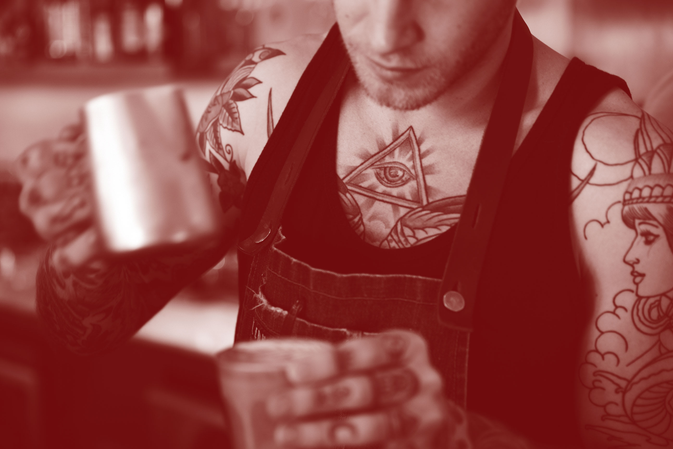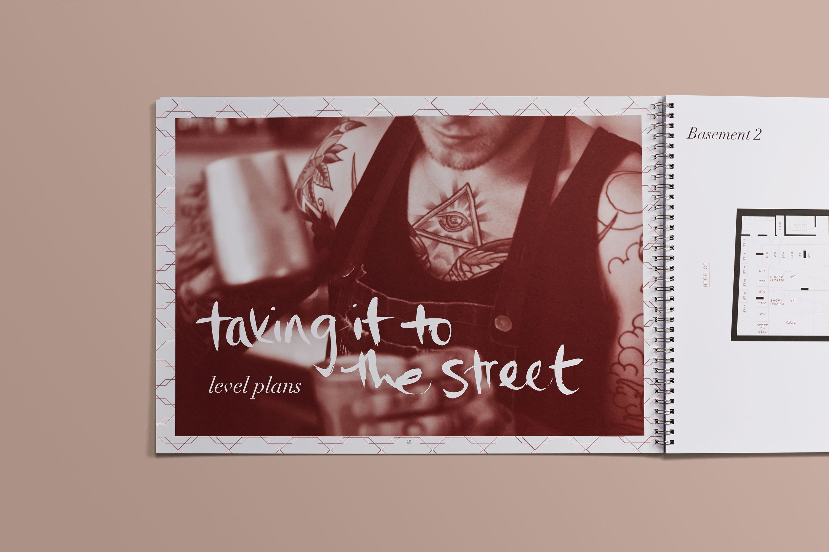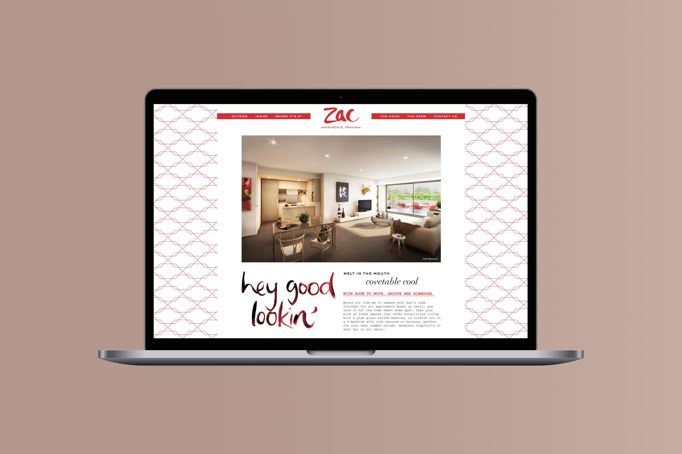 red palette, local photography and pattern inspired by the façade, Zac stood